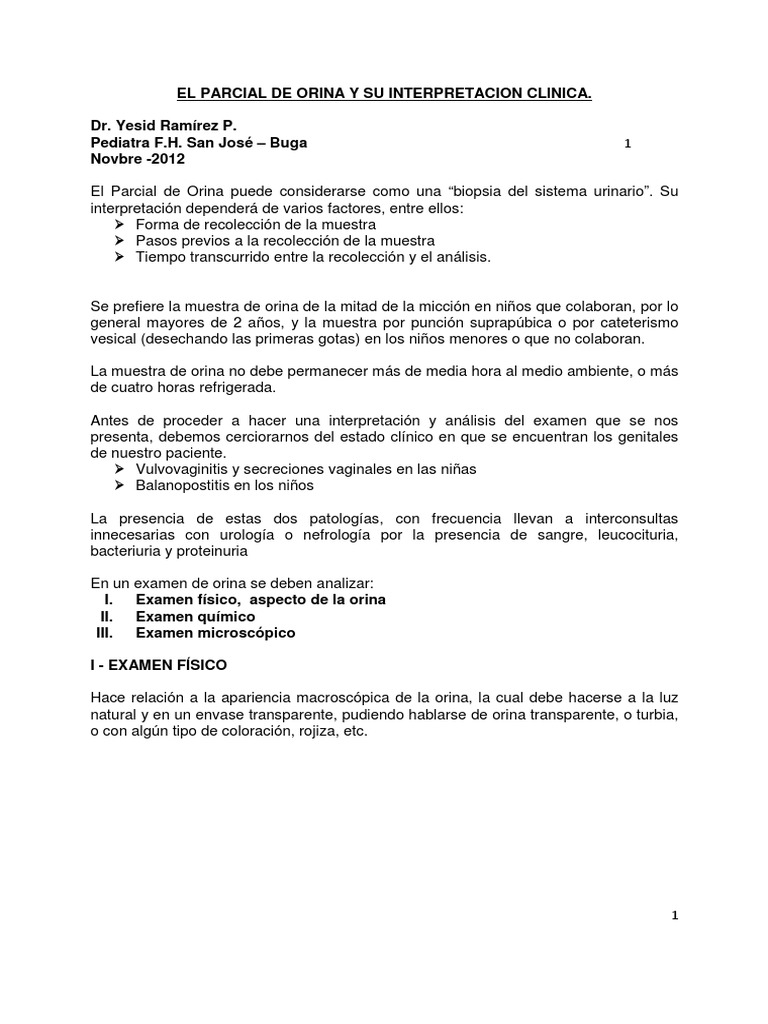 Recomendaciones generales para recolección de orina de 24 horas Tenga en cuenta que la recolección adecuada nos permitirá proporcionar resultados útiles a su médico. Color, aspecto, olor análisis químico: Te explicamos los síntomas, cómo se en definitiva, infección de orina o del tracto urinario son expresiones que engloban diferentes enfermedades. Esto significa que no contiene ninguna bacteria ni otros organismos (por ejemplo, hongos). Tomar la muestra a partir del chorro medio y mínimo 10 cm de orina, procesar. El examen de parcial de orina se realiza con una muestra de orina preferiblemente de la mañana. Parcial de orina es un examen rutinario que incluye una serie de pruebas selectivas que permiten descubrir una variedad de enfermedades renales, tracto urinario y sistemticas. Parcial de orinaes el análisis de la orina puede dividirse en tres etapas: El sistema urinario humano es un conjunto de órganos encargados de la producción, almacenamiento y expulsión de la orina. Densidad, ph, glucosa, proteínas, sangre, cuerpos ce tónicos. Medicamentos como acetaminofén, aspirina, naproxeno, ionizada, metildopa o. Pase la muestra de orina de la bolsa recolectora a un frasco de orina, tape bien y marque con el nombre completo y documento del paciente.